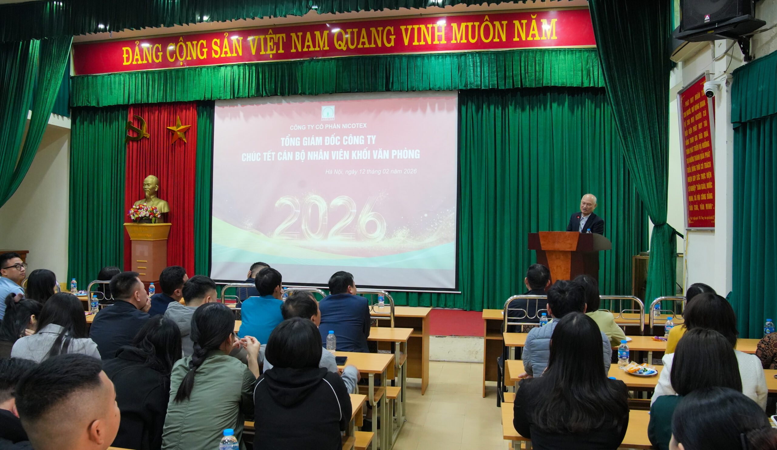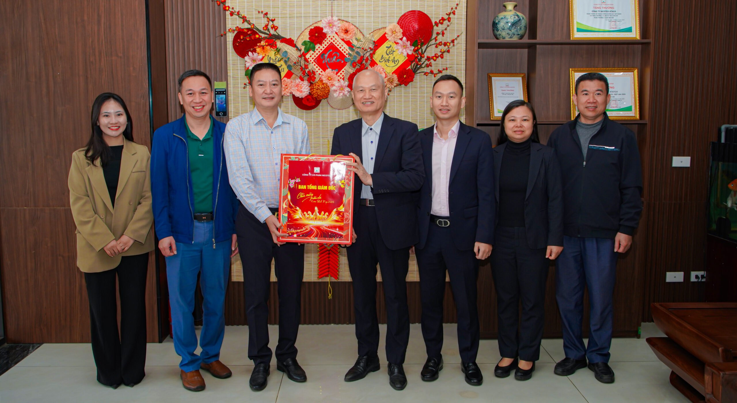 Ngày 12/02 – ngày làm việc cuối cùng trước khi chính thức bước vào kỳ nghỉ Tết Nguyên Đán Bính Ngọ 2026, bầu không khí tại Nicotex trở nên ấm áp và gắn kết hơn bao giờ hết. Trong ngày chuyển giao rộn ràng, Ban Tổng giám đốc Công ty đã gặp mặt thân mật và chúc Tết các đơn vị thành viên tại khu vực Hà Nội cùng toàn thể CBNV các phòng chức năng Công ty Nicotex.