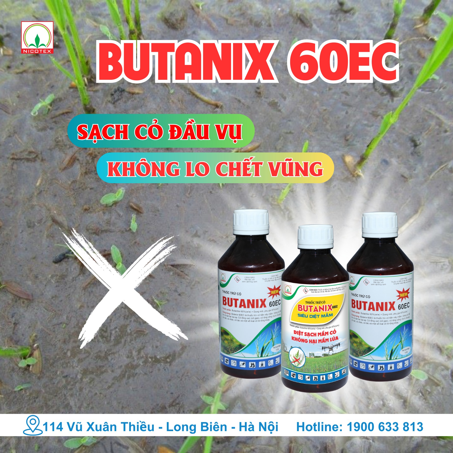 Butanix 60EC là thuốc trừ cỏ chọn lọc, tiền nảy mầm. Với sản phẩm này, bà con có thể loại bỏ cỏ đầu vụ hiệu quả trên ruộng sạ. Đặc biệt, khi phun, thuốc sẽ thấm sâu vào lá và rễ cỏ, làm cho cỏ bị hủy hoại từ bên trong, ngăn chặn sự phát triển của các loại cỏ như cỏ lồng vực, đuôi phụng, và một số cỏ lá hẹp,.. mà không lo chết vũng, không hại đến lúa. Bên cạnh đó, Butanix 60EC đồng thời còn có tác dụng hạn chế sự phát triển của rong rêu, giúp cây trồng sinh trưởng phát triển tốt.