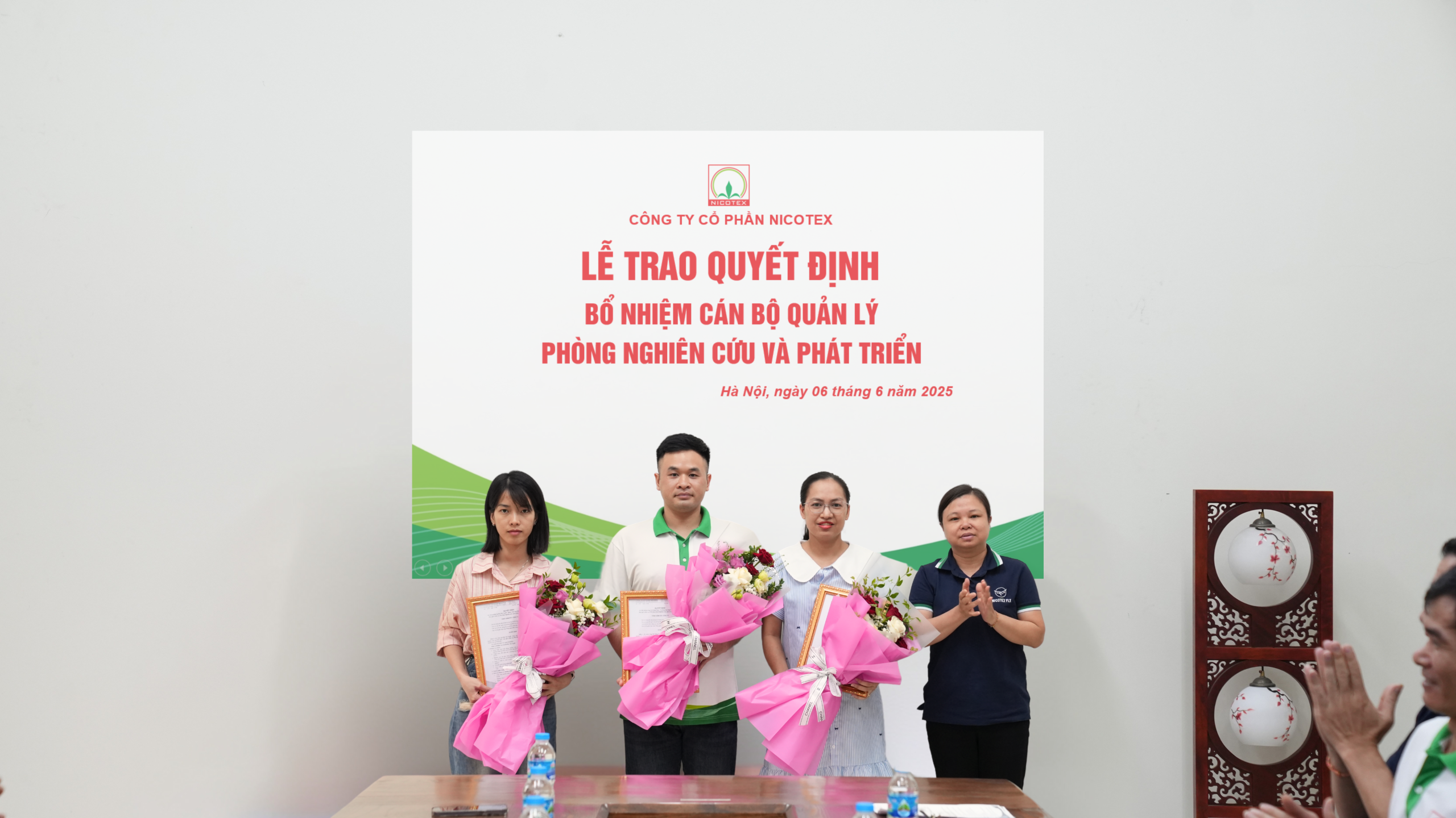 Ngày 06/6/2025, tại trụ sở Công ty CP Nicotex, buổi lễ công bố và trao Quyết định bổ nhiệm cán bộ quản lý Phòng Nghiên cứu & Phát triển (NC&PT) đã được tổ chức trang trọng. Sự kiện nằm trong chiến lược xây dựng và củng cố lực lượng nhân sự chủ chốt theo định hướng của Hội đồng Quản trị và Ban Tổng Giám đốc.