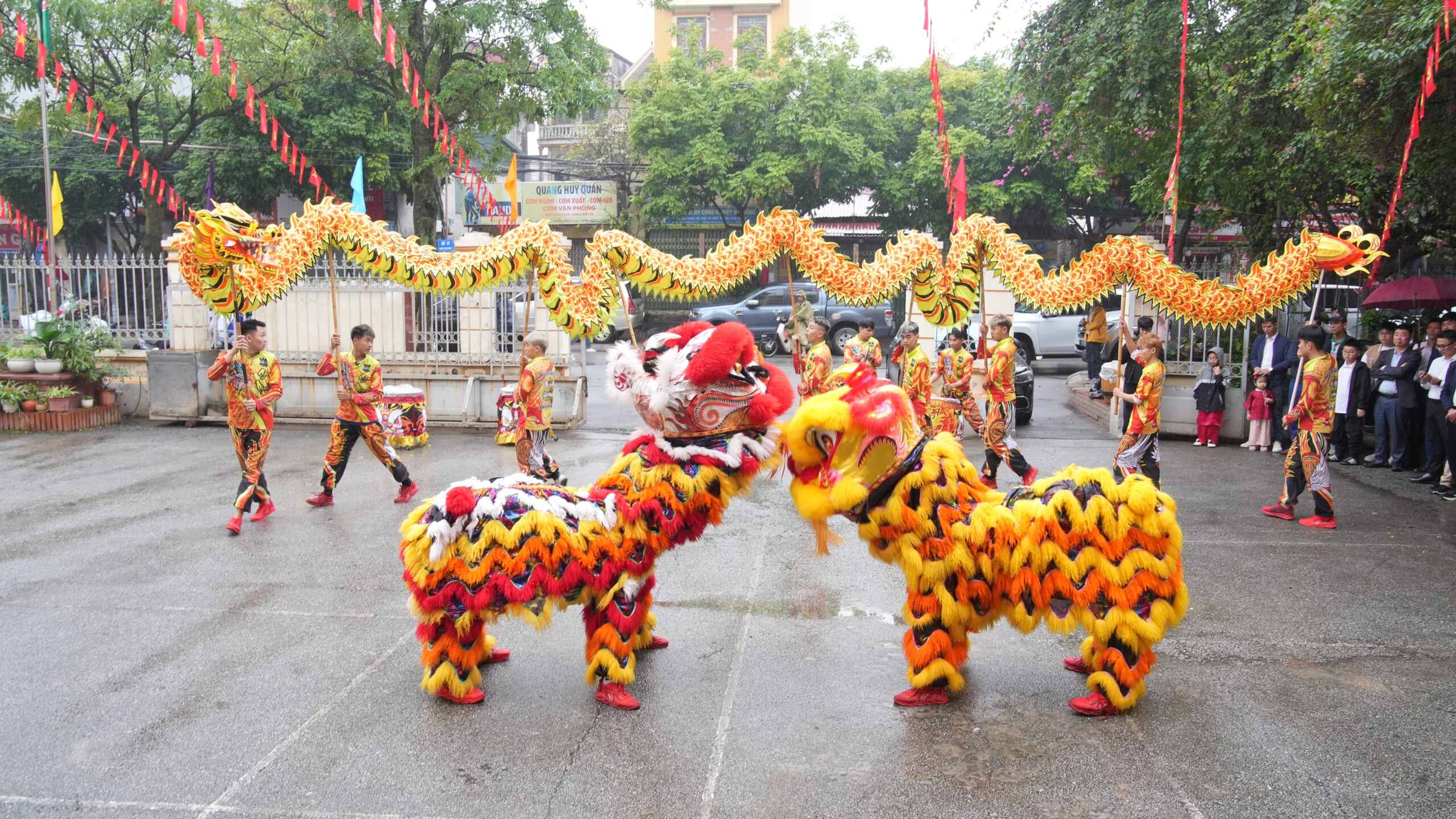 Ngay từ sáng sớm, không khí tại trụ sở và các đơn vị thành viên tại trụ sở số 114 Vũ Xuân Thiều đã bùng nổ sức sống với màn múa Lân xông đất rộn ràng. Những tiếng trống hội giòn giã như lời chào đón tài lộc, hanh thông, hứa hẹn một năm mới đại cát, đại lợi cho doanh nghiệp.