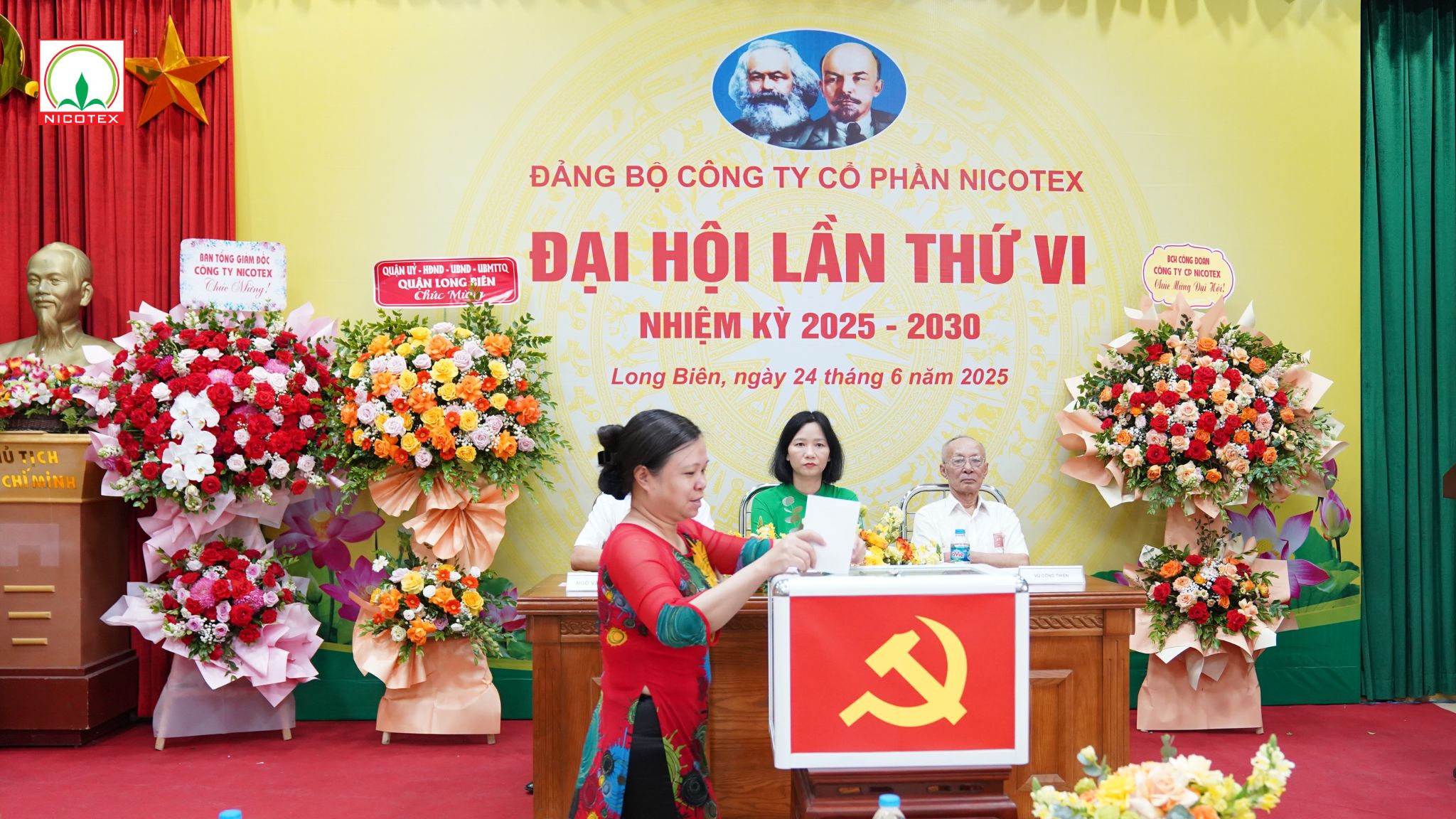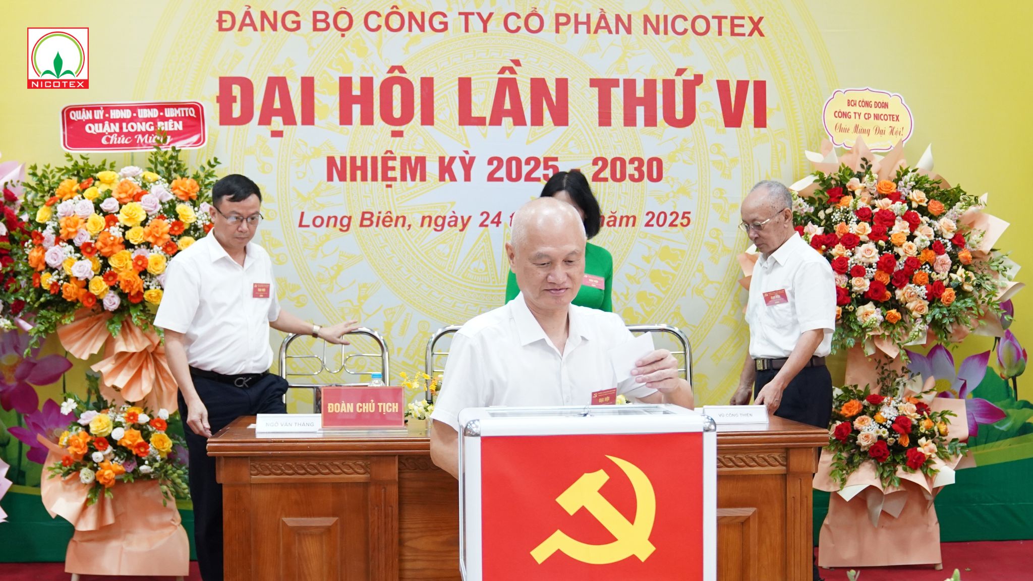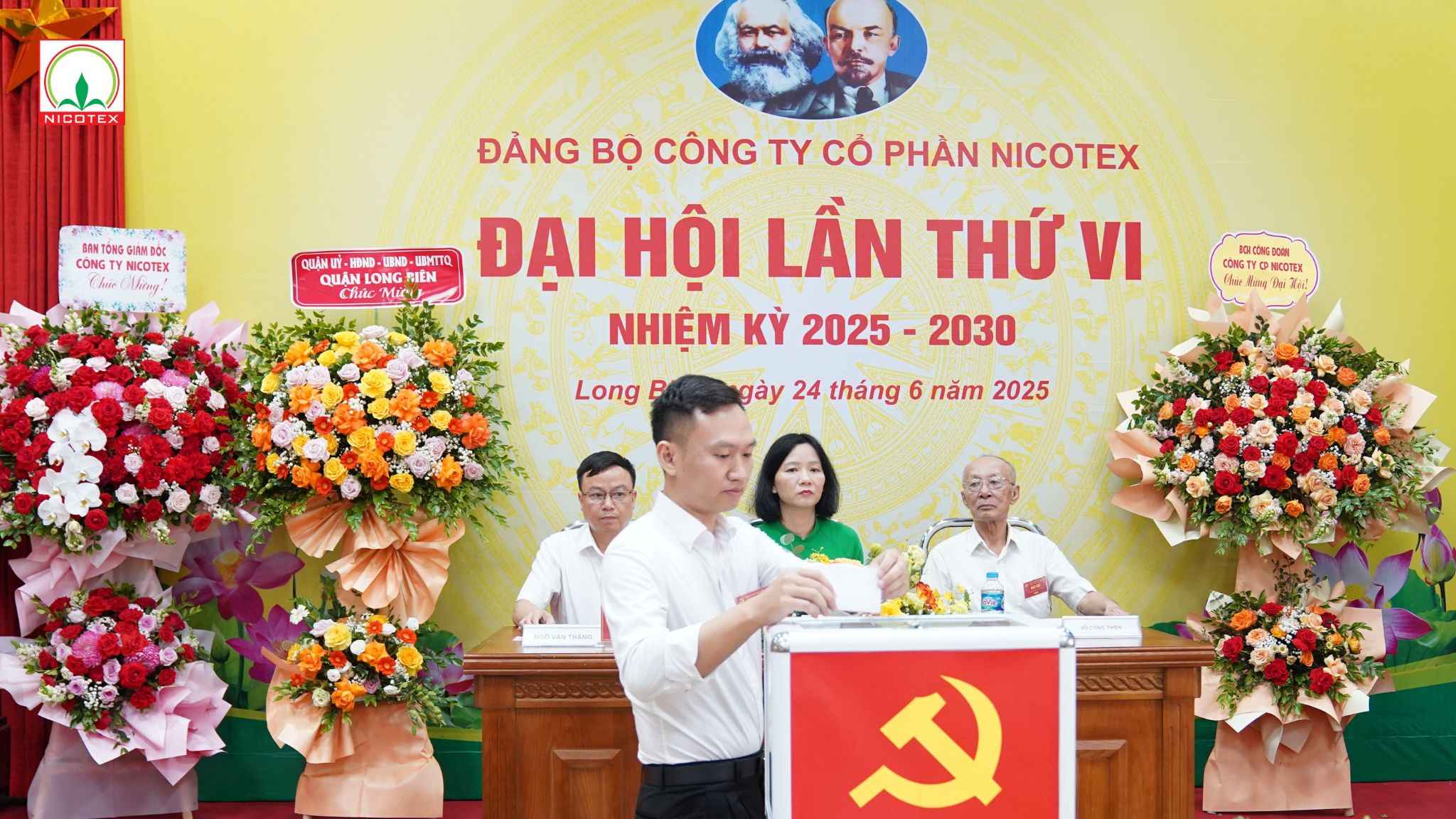 Sáng ngày 24 tháng 6 năm 2025, tại hội trường Công ty Cổ phần Nicotex, Đại hội Đảng bộ lần thứ VI, nhiệm kỳ 2025-2030 đã chính thức khai mạc và thành công tốt đẹp. Đây là một sự kiện chính trị trọng đại, không chỉ đánh dấu bước chuyển mình quan trọng trong công tác lãnh đạo, chỉ đạo và phát triển toàn diện của Công ty trong 5 năm tới, mà còn diễn ra trong không khí phấn khởi, tự hào hướng tới Đại hội đại biểu toàn quốc lần thứ XIV của Đảng và kỷ niệm 35 năm thành lập Công ty Cổ phần Nicotex.