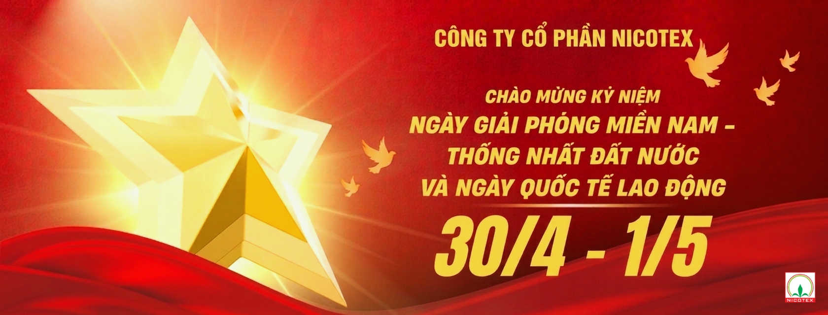 Trong không khí hào hùng của những ngày tháng Tư lịch sử, hướng tới kỷ niệm 51 năm Ngày Giải phóng miền Nam, thống nhất đất nước (30/04/1975 – 30/04/2026) và chào mừng Ngày Quốc tế Lao động 01/05, Công ty Cổ phần Nicotex xin gửi tới Quý đối tác, Quý khách hàng và toàn thể CBNV lời chúc mừng nồng nhiệt và chân thành nhất.