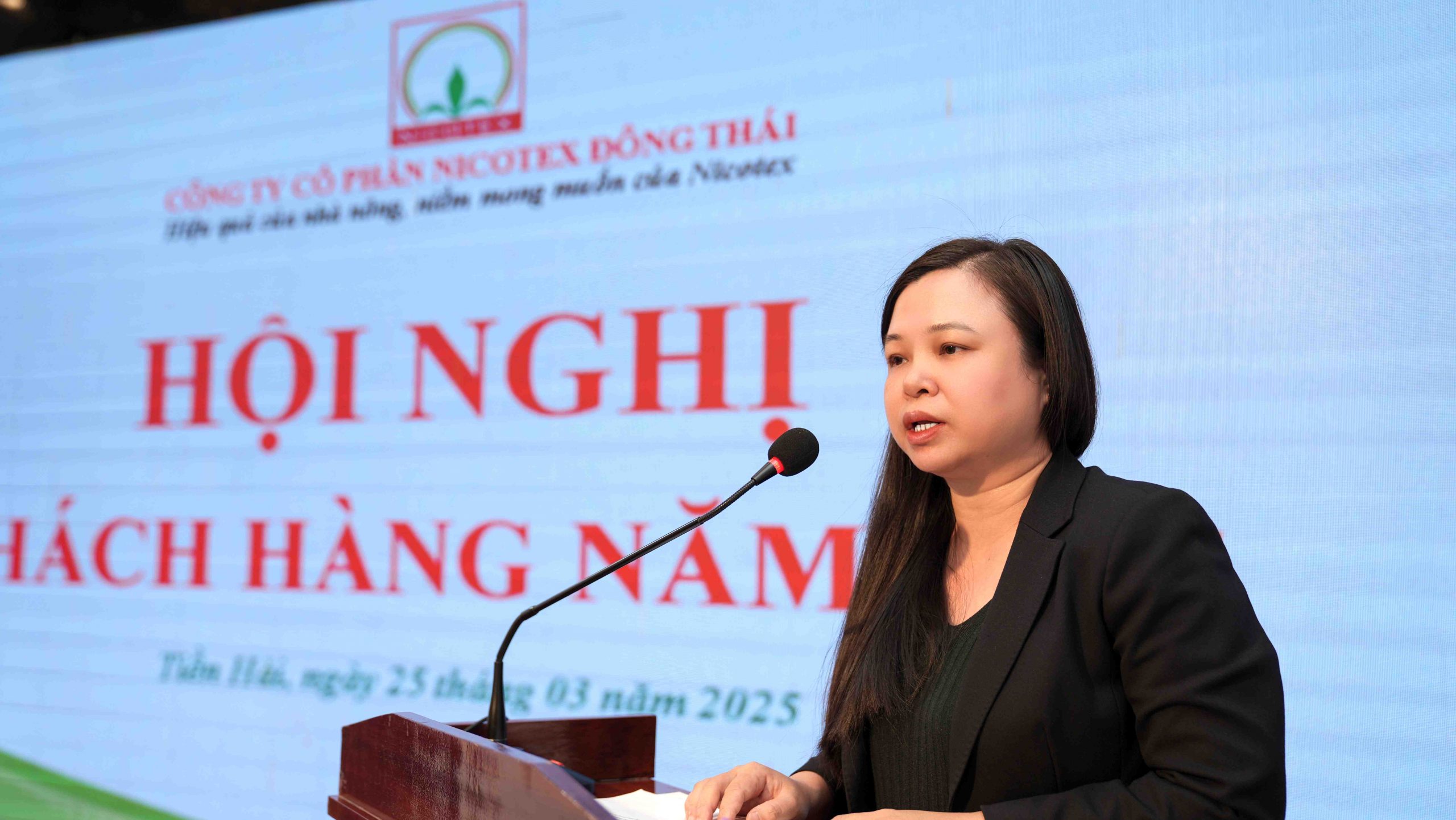 Phát biểu tại hội nghị, bà Phạm Thị Thoa – Phó Tổng Giám đốc Công ty Nicotex cho biết: Công ty CP Nicotex Đông Thái có gần 30 năm hoạt động trong lĩnh vực gia công, đóng gói thuốc bảo vệ thực vật, tiền thân là xí nghiệp trực thuộc Bộ Quốc phòng. Trải qua quá trình cổ phần hóa và tái cấu trúc, công ty đã phát triển mạnh mẽ về cơ sở hạ tầng, công nghệ và quy mô sản xuất, đặc biệt là các dây chuyền gia công SL và WP đạt tiêu chuẩn kỹ thuật và an toàn môi trường. Đến nay, công ty là đối tác gia công hàng đầu không chỉ trong hệ thống Nicotex mà còn với nhiều doanh nghiệp lớn trong ngành nông nghiệp. Trong tương lai, Bà khẳng định Nicotex Đông Thái sẽ tiếp tục đầu tư mở rộng, hướng đến mục tiêu trở thành đơn vị gia công thuốc BVTV hàng đầu miền Bắc và cả nước, đóng góp tích cực cho nền nông nghiệp hiện đại và bền vững của Việt Nam.
