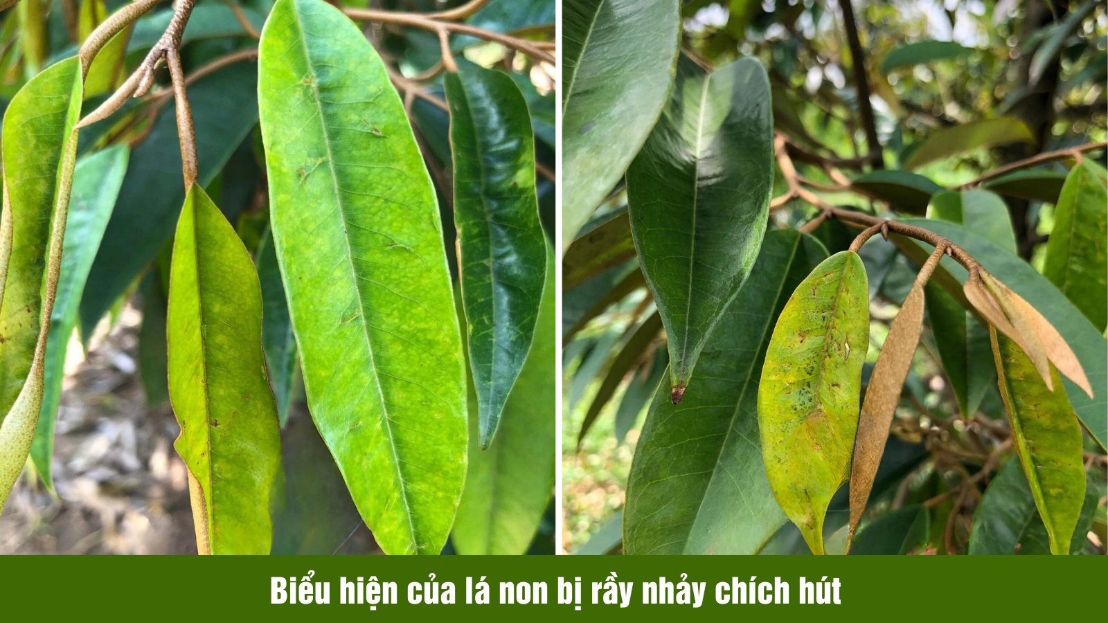 Khi rầy chích hút lá non và đọt non sẽ khiến lá nhỏ, kém phát triển, để lại các vết thương tạo điều kiện cho nấm khuẩn phát triển. Về vết chích cả hai loại đều để lại trên bề mặt lá những vết châm màu vàng có kích thước từ 0,5mm – 1mm.