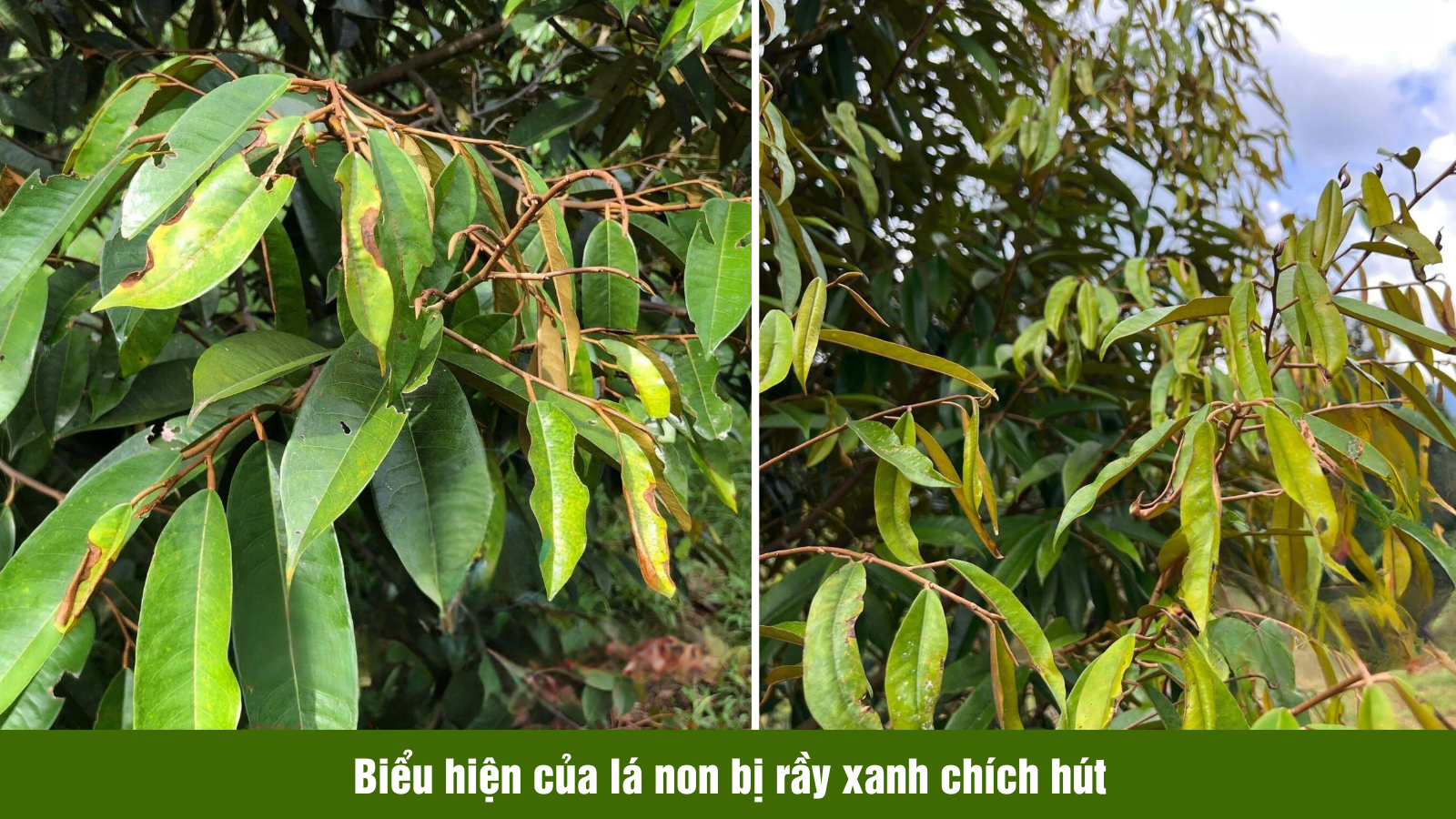 Rầy nhảy và rầy xanh đều xuất hiện xuyên suốt trong vườn sầu riêng, ở tất cả các giai đoạn như lá non, lá lụa và lá già. Tuy nhiên, chúng sẽ phát triển mạnh và tấn công cây sầu khi nhú đọt mới (nhú mũi giáo).
