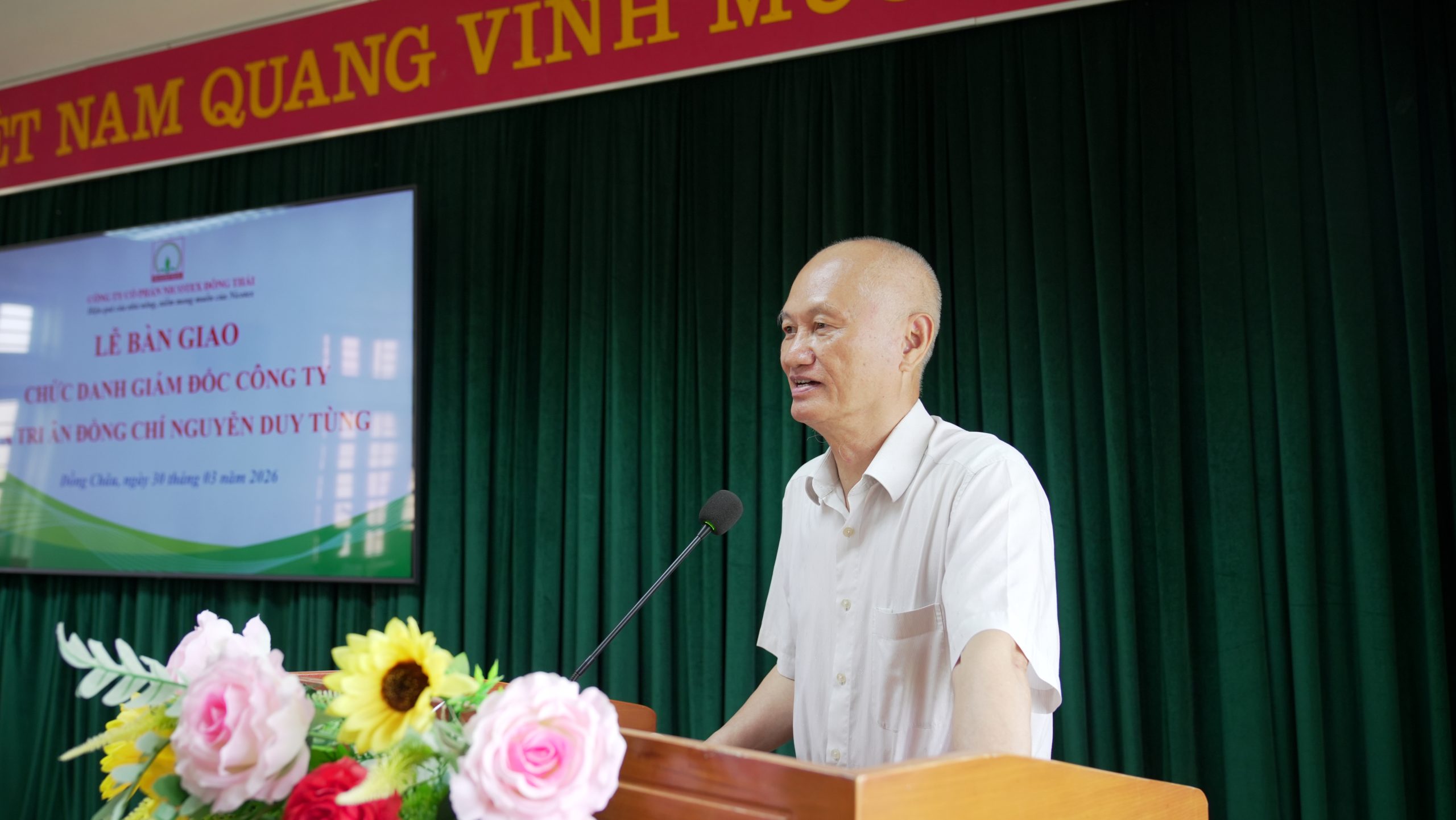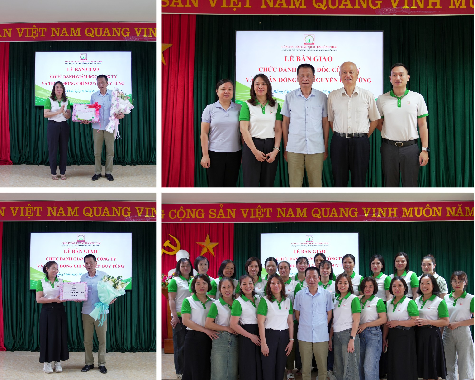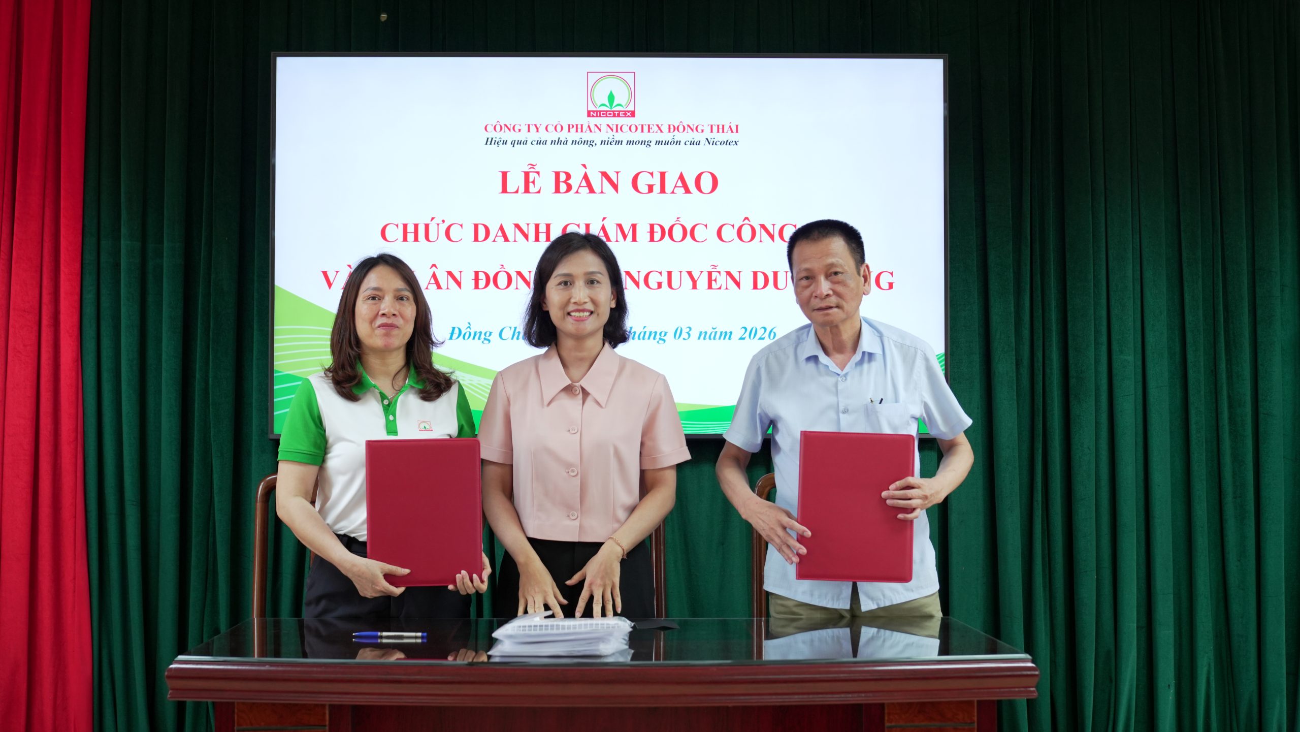 Sau hành trình 31 năm gắn bó bền bỉ với hệ thống và 16 năm trực tiếp quản lý Nicotex Đông Thái, đồng chí Nguyễn Duy Tùng chính thức bàn giao nhiệm vụ điều hành để đảm nhiệm cương vị Phó Chủ tịch HĐQT chuyên trách. Tiếp nhận trọng trách này, đồng chí Trịnh Thị Mai Lan được bổ nhiệm giữ chức vụ Quyền Giám đốc Công ty và sẽ kế thừa và phát huy những giá trị cốt lõi mà người tiền nhiệm đã dày công gây dựng.