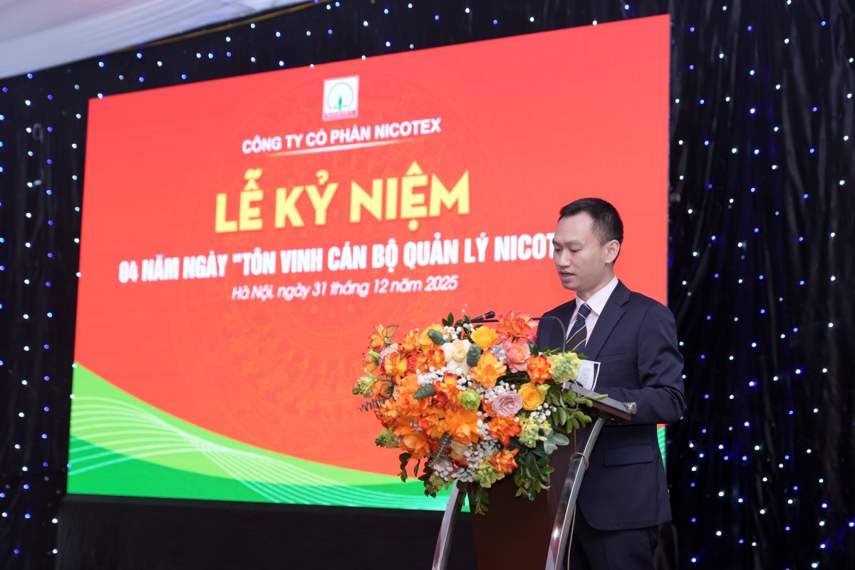 Sáng ngày 31/12/2025, Công ty Cổ phần Nicotex đã long trọng tổ chức Lễ kỷ niệm 04 năm ngày “Tôn vinh người quản lý Nicotex” (31/12/2021 – 31/12/2025). Sự kiện không chỉ là nhịp cầu kết nối các thế hệ lãnh đạo mà còn là dịp để toàn hệ thống nhìn thẳng vào những bài học thực tiễn, xác định mục tiêu chiến lược cho năm 2026 với tinh thần “Phát triển vượt trội”.