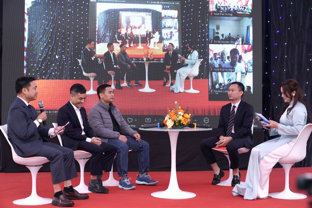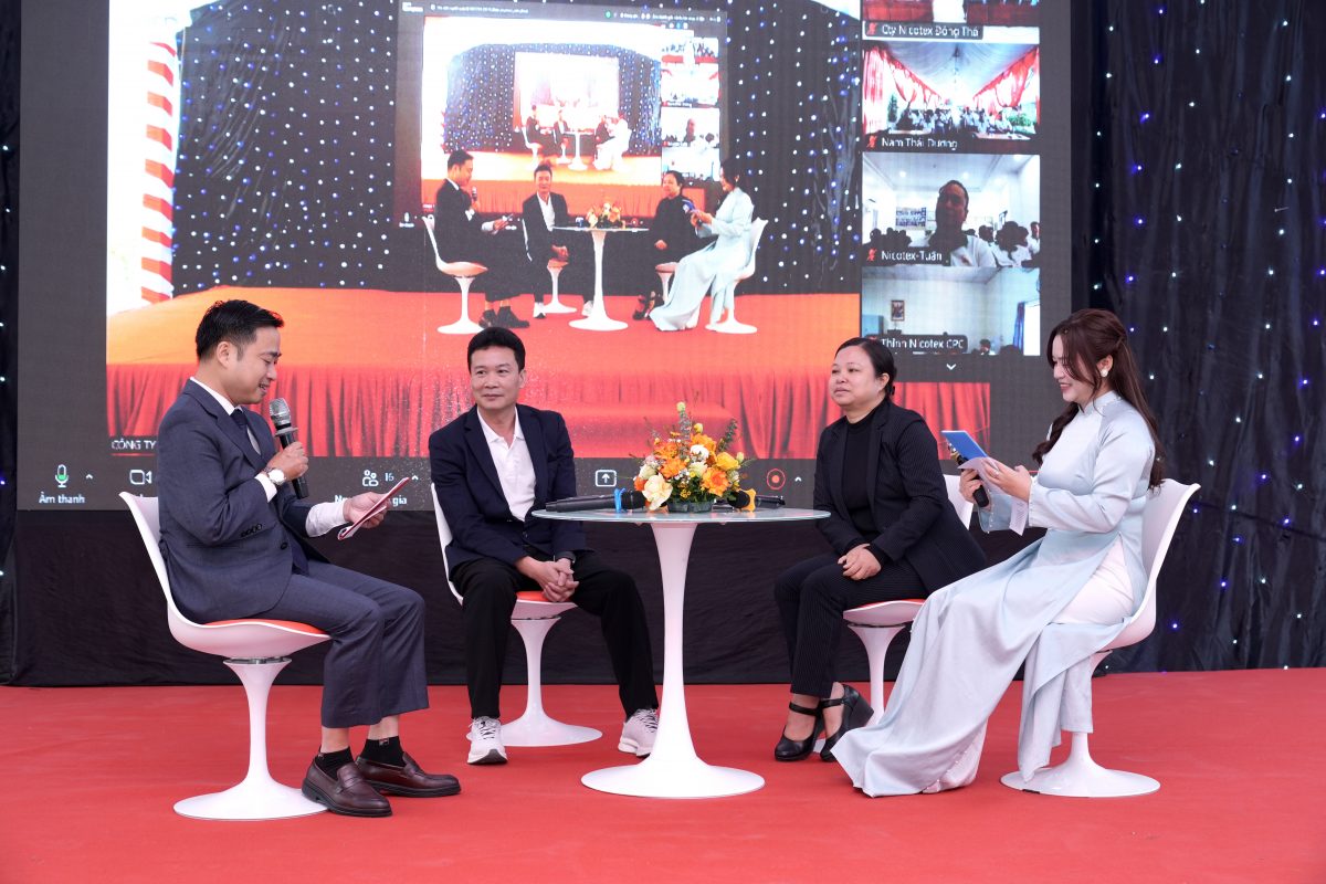 Phiên 3: Khát vọng – Hiệu quả – Tạo giá trị thật. Các thế hệ quản lý trẻ như bà Vũ Thị Hải – GĐ công ty Nicotex Tour; bà Nguyễn Thị Phương – Phó GĐ công ty Nicotex Atatco; bà Trương Thị Cẩm Anh – Trưởng phòng Kế hoạch kinh doanh công ty Nicotex Fly; bà Nguyễn Thị Xuân – Kế toán trưởng công ty Nicotex Thái Bình và ông Mai Quang Vinh – Phó GĐ công ty phân bón Nicotex Miền Bắc, GĐ xí nghiệp Tiền Hải đã chia sẻ về tinh thần phụng sự và quyết tâm tạo ra giá trị thực cho hệ thống Nicotex.