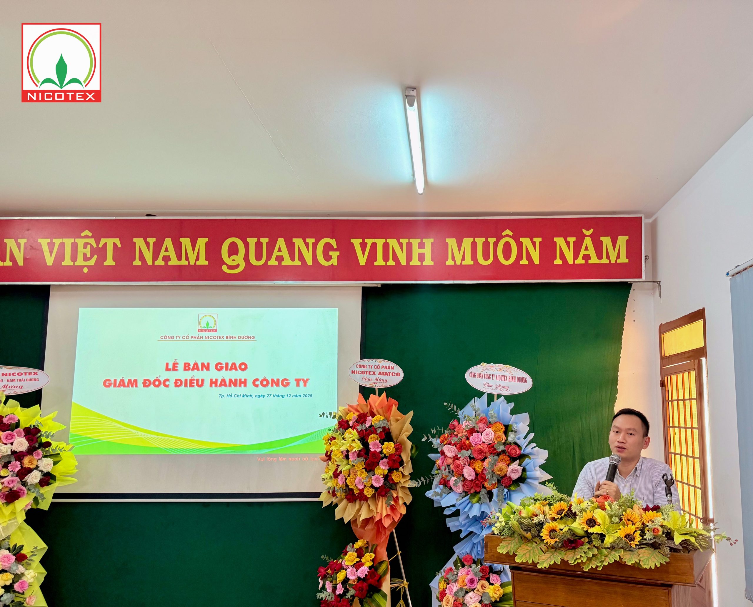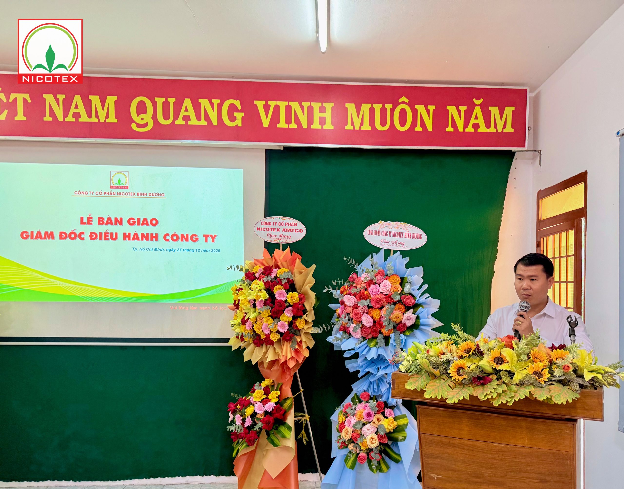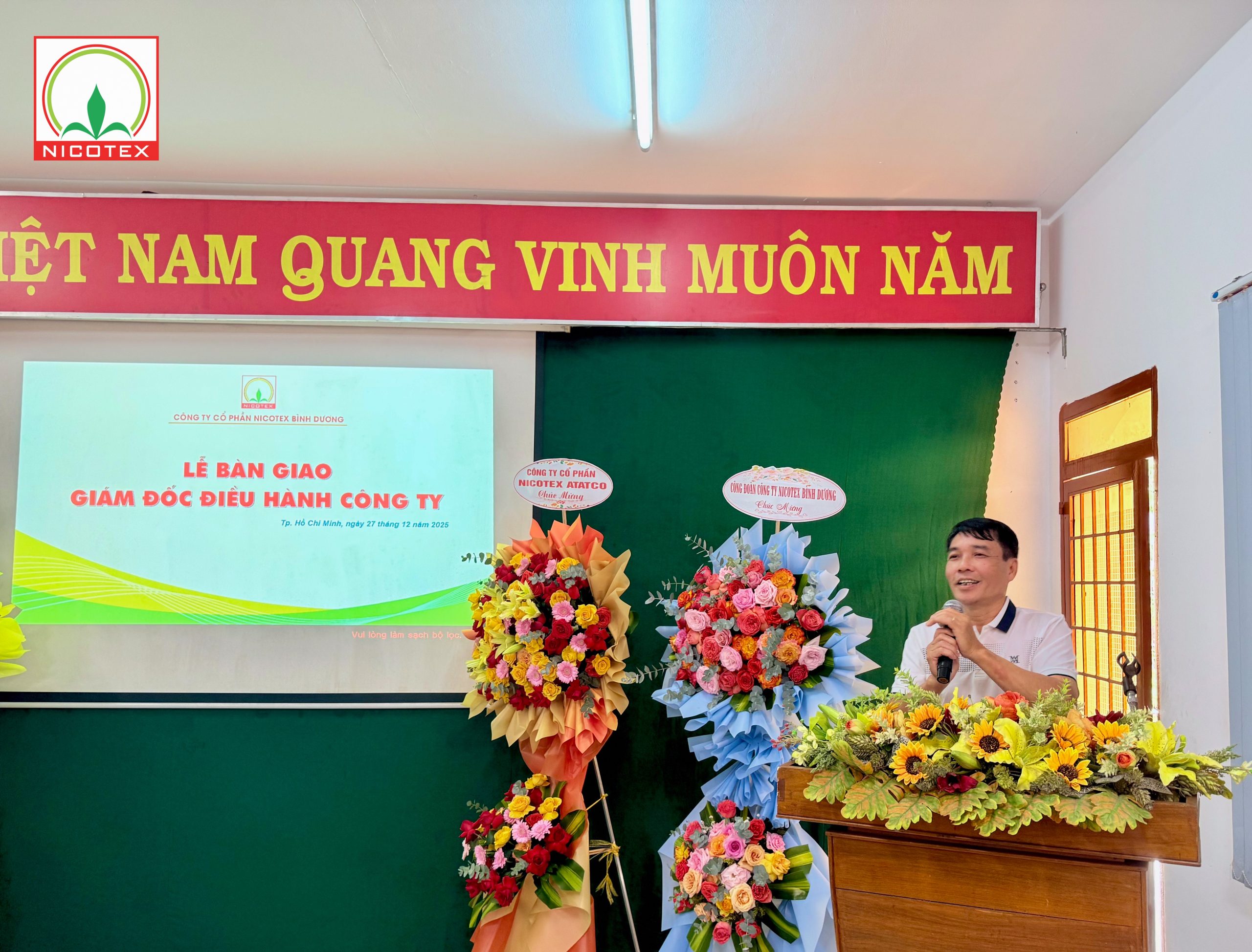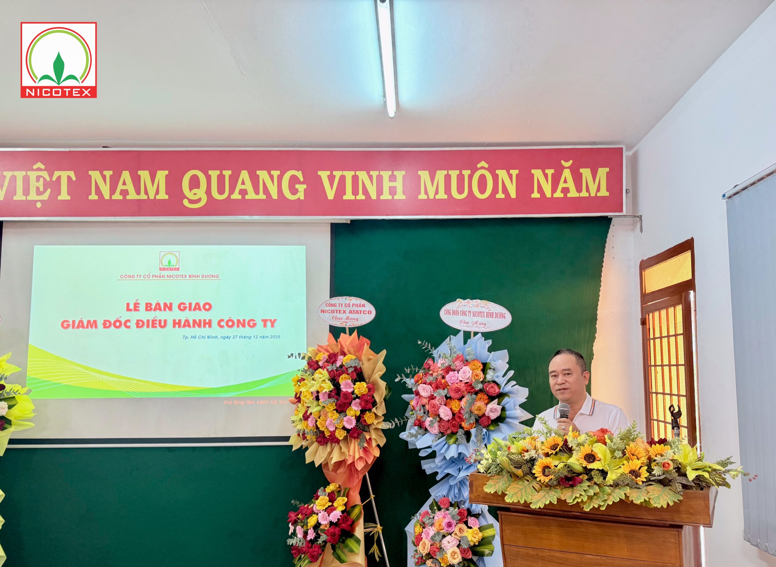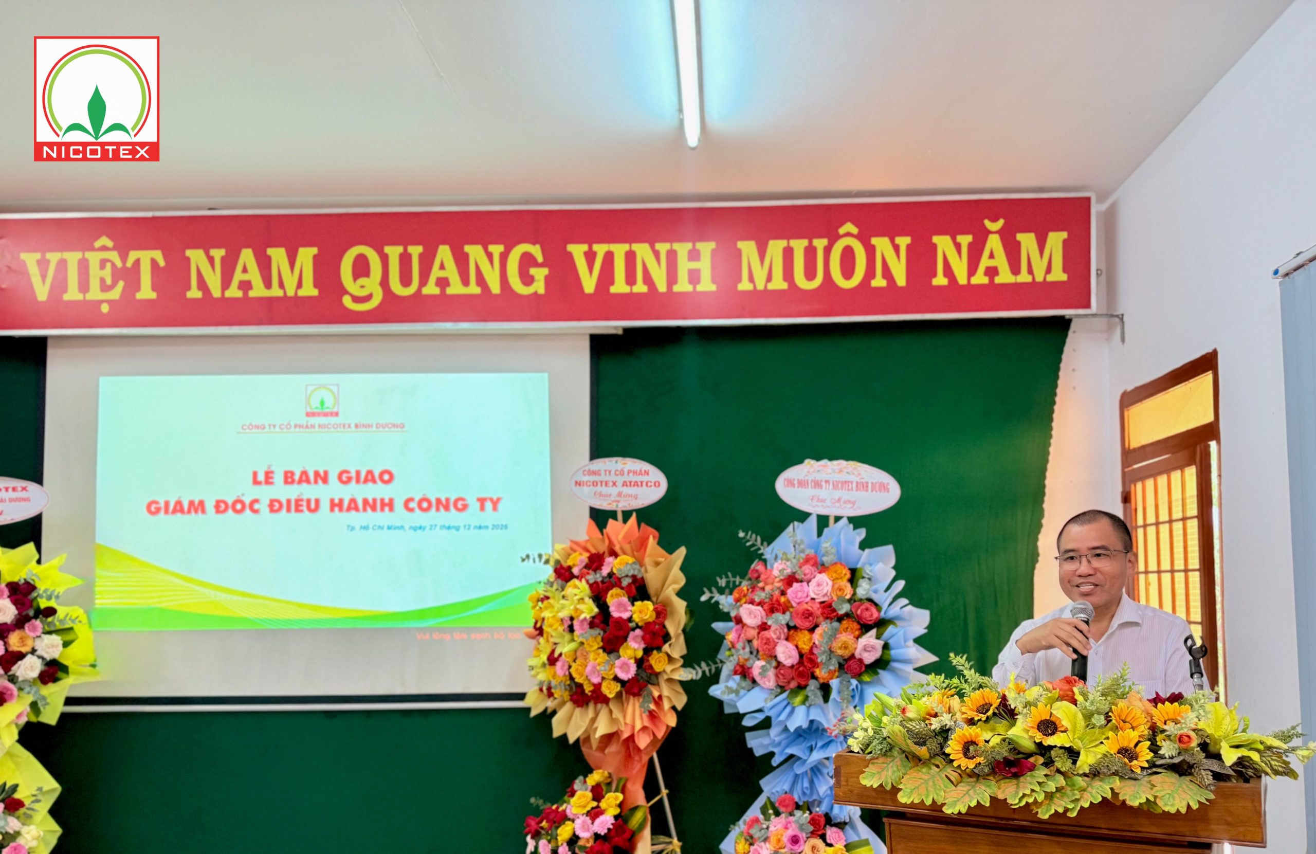 Trong không khí trang trọng và đầy cảm xúc, ngày 27/12/2025, Công ty Cổ phần Nicotex Bình Dương đã long trọng tổ chức Lễ bàn giao chức danh Giám đốc điều hành và Tri ân nguyên Giám đốc Hồ Viết Cường. Buổi lễ không chỉ là cột mốc chuyển giao thế hệ lãnh đạo mà còn là dịp để nhìn lại hành trình 30 năm tận tâm cống hiến, đồng thời thắt chặt tình đoàn kết của toàn hệ thống Nicotex.