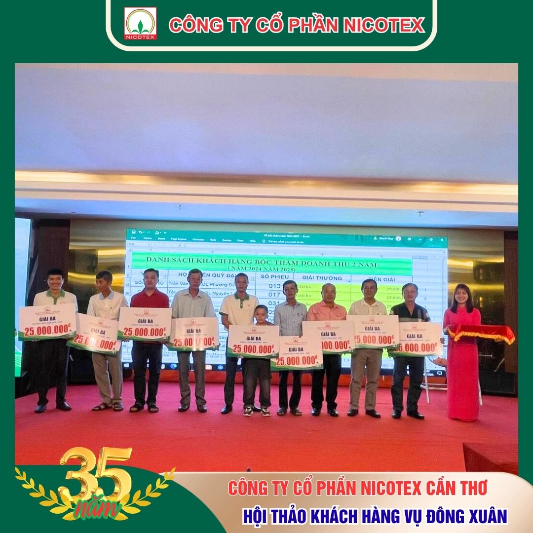 Vừa qua, Công ty Nicotex Cần Thơ đã long trọng tổ chức sự kiện thường niên lớn trong năm: Hội thảo Khách hàng vụ Đông Xuân 2025 – 2026. Sự kiện không chỉ đánh dấu một cột mốc quan trọng trong việc chuẩn bị cho mùa vụ mới mà còn là dịp để Nicotex bày tỏ lòng tri ân sâu sắc đến toàn thể quý đại lý và đối tác kinh doanh đã gắn bó, đồng hành trong suốt thời gian qua.