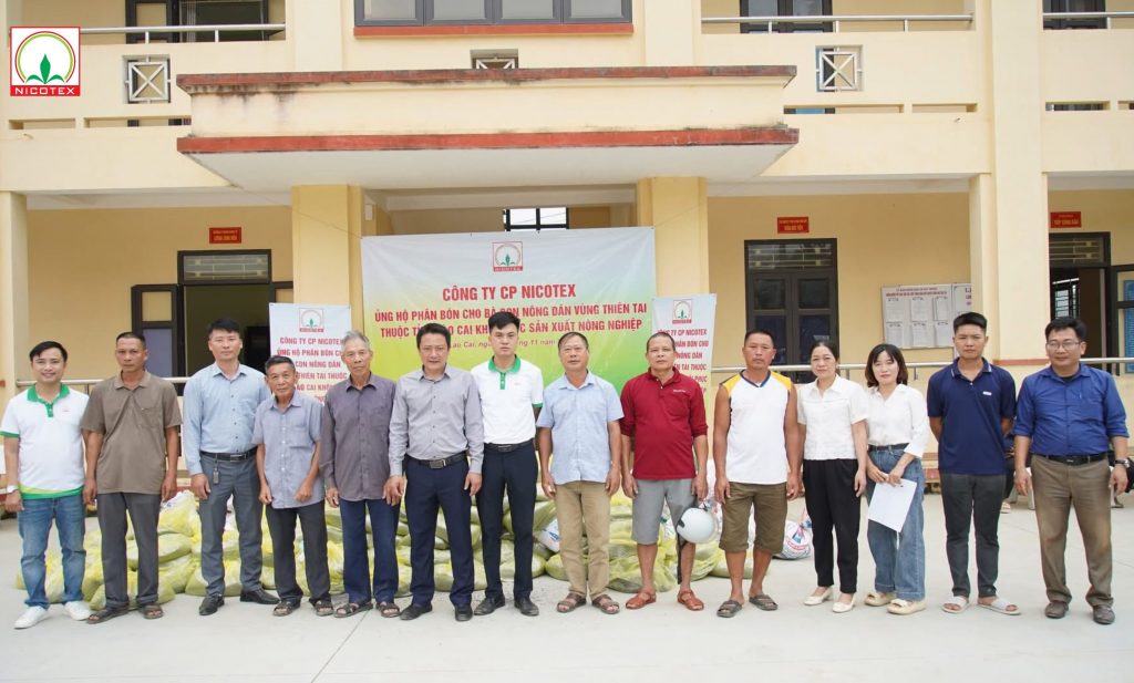 Tại tỉnh Lào Cai, Công ty Nicotex Phân bón miền Bắc đã phối hợp cùng Công ty Việt Á trao tặng phân bón NPK 5-10-3 trị giá gần 100 triệu đồng cho các hộ dân tại Tổ dân phố Thanh Sơn (phường Nam Cường) và Tổ dân phố 3 (phường Âu Lâu), kịp thời giúp bà con cải tạo đất đai sau lũ.