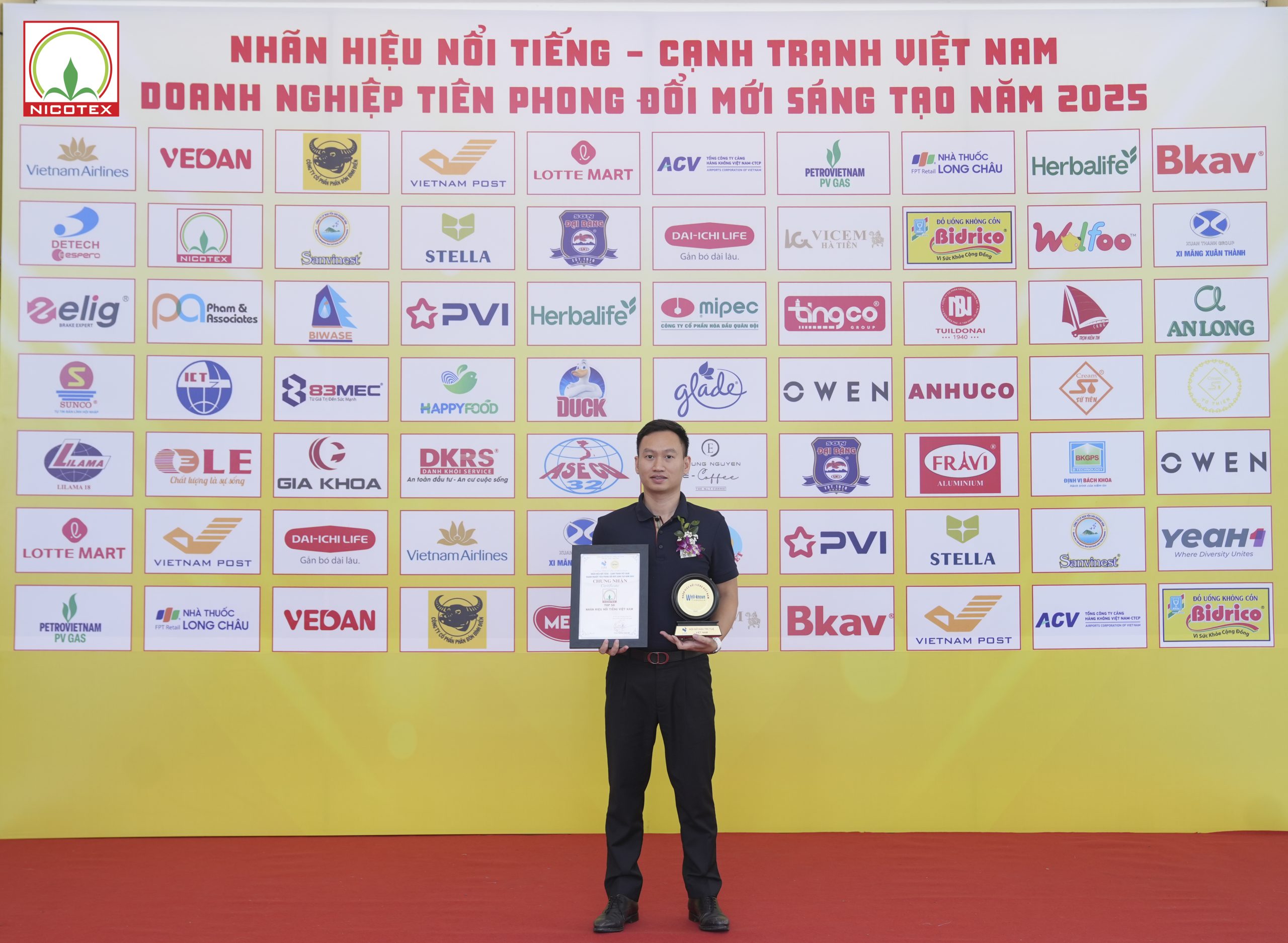 Ông Nguyễn Thành Đạt – Phó Tổng Giám đốc Thường trực Công ty CP Nicotex nhận Giải Top 50 “Nhãn hiệu nổi tiếng, nhãn hiệu cạnh tranh Việt Nam – Doanh nghiệp tiên phong đổi mới sáng tạo năm 2025