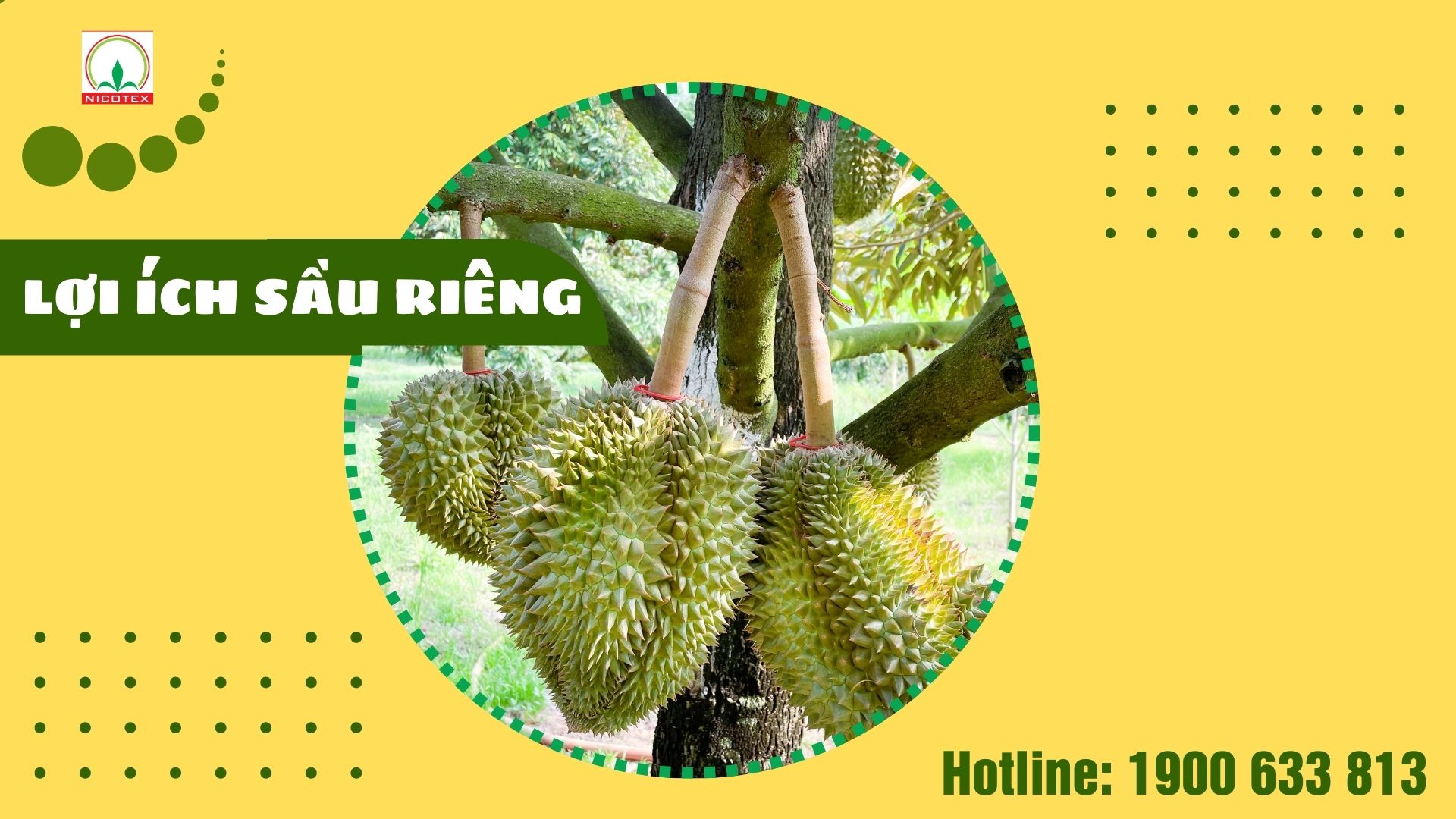 Bà con có bất kỳ thắc mắc hoặc cần được tư vấn về kỹ thuật và các biện pháp chăm sóc cây sầu riêng xin vui lòng liên hệ đường dây nóng 1900 633 813 để được đội ngũ nhân viên Nicotex tư vấn nhanh và hiệu quả nhất.