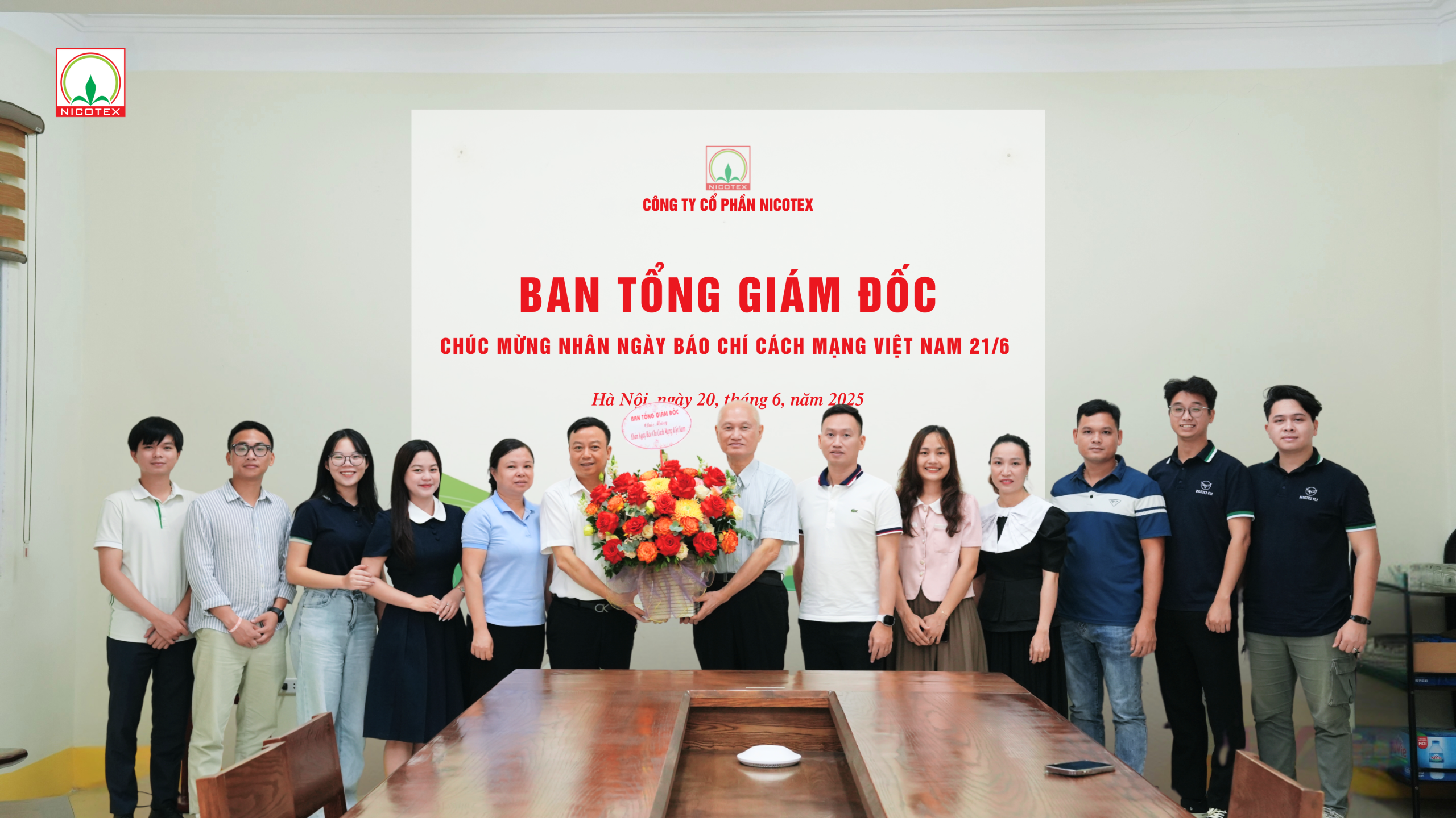Nhân kỷ niệm 100 năm ngày Báo chí Cách mạng Việt Nam, ngày 20/6, tại trụ sở công ty số 114 Vũ Xuân Thiều, Ban Tổng Giám đốc Công ty Cổ phần Nicotex đã gửi lời chúc mừng và tri ân đến toàn thể cán bộ làm công tác truyền thông trong toàn hệ thống, đồng thời nhấn mạnh vai trò và sứ mệnh của đội ngũ này trong thời kỳ chuyển đổi số và hội nhập.