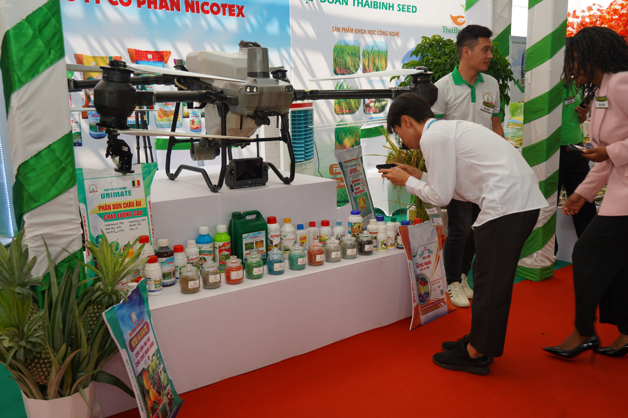 Đặc biệt, từ ngày 10 – 12/10/2024, tham dự Triển lãm khoa học và công nghệ tại Học viện nông nghiệp Việt Nam có 22 gian hàng. Trong đó, gian hàng công ty cổ phần Nicotex được trưng bày nhiều sản phẩm nổi tiếng có thương hiệu khắp cả nước như sản phẩm Sattrungdan, Nimasinat, Glufast, Detect, Chani, Butanix…., các sản phẩm phân bón và máy bay nông nghiệp DJI T50 đã thu hút được các khách hàng đến tham quan và tìm hiểu thông tin về ngành nghề kinh doanh, các sản phẩm và giải pháp công nghệ trong lĩnh vực nông nghiệp của Nicotex.