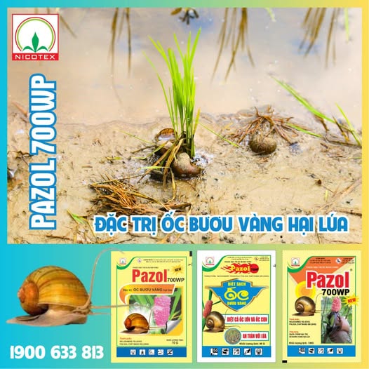 Pazol 700WP là Thuốc đặc trị ốc bươu vàng của công ty Nicotex có hình ảnh là biểu tượng QỦA CẦU LỬA đã được bà con tin dùng nhiều năm qua. Thuốc có tác dụng vị độc, xông hơi. Pazol diệt ốc triệt để theo cơ chế tác động kép: vừa tác động đến hệ hô hấp, vừa tác động đến hệ tiêu hóa của ốc, làm ức chế men hô hấp và trao đổi chất trong cơ thể ốc dẫn đến phá hủy hệ tiêu hóa và hô hấp của ốc.