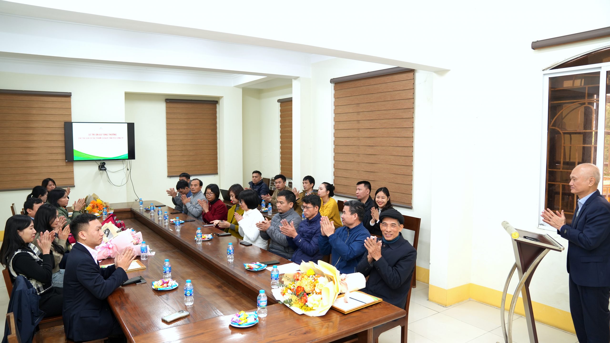 Sáng ngày 20/1, Ban Tổng Giám đốc Nicotex đã tổ chức buổi lễ tri ân đặc biệt nhằm tôn vinh những cán bộ, nhân viên đã sáng tác nên các tác phẩm nghệ thuật như thơ ca, bài hát, câu chuyện và kịch bản. Những tác phẩm này không chỉ thể hiện tình yêu sâu sắc với công ty mà còn góp phần lan tỏa giá trị văn hóa đặc biệt của đại gia đình Nicotex.